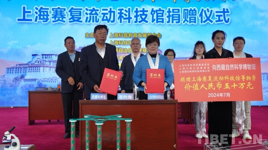 中國西藏網(wǎng)訊 7月10日,上??破战逃l(fā)展基金會科普物資捐贈儀式在西藏自然科學(xué)博物館舉行。