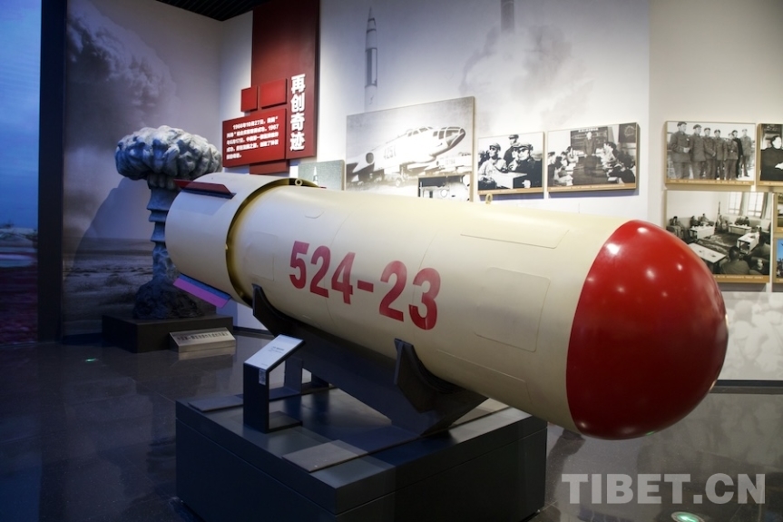 圖為中國第一顆機(jī)載氫彈模型。攝影:桑吉