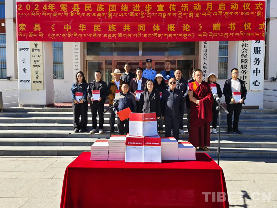 8月30日,西藏自治區(qū)那曲市索縣民族團(tuán)結(jié)進(jìn)步宣傳活動(dòng)月啟動(dòng)儀式舉行,同時(shí)開展了《中華民族共同體概論》贈(zèng)書活動(dòng),全縣各族各界干部群眾代表共計(jì)100余人參加。此次啟動(dòng)儀式的舉辦,標(biāo)志著索縣民族團(tuán)結(jié)進(jìn)步宣傳活動(dòng)月正式拉開帷幕。