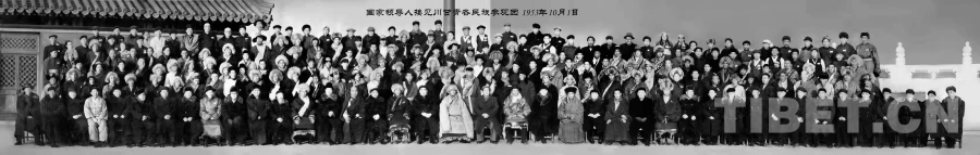 圖為1959年10月,米福堂(前排右二)當(dāng)選玉樹州第一屆人民委員會委員