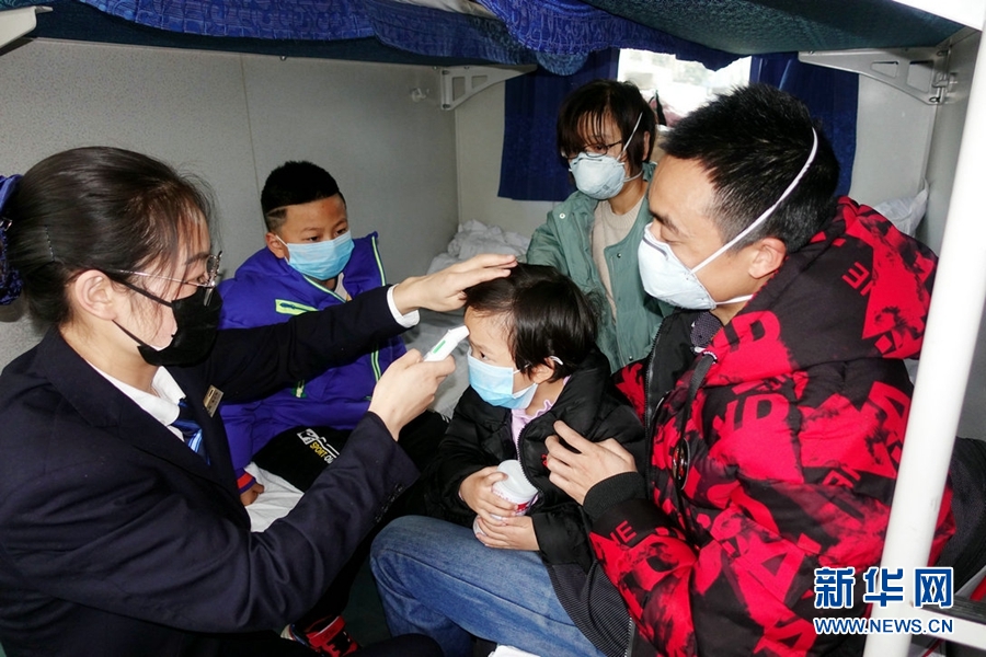 西寧客運(yùn)段職工為旅客測(cè)量體溫。新華網(wǎng) 郝寶君 攝