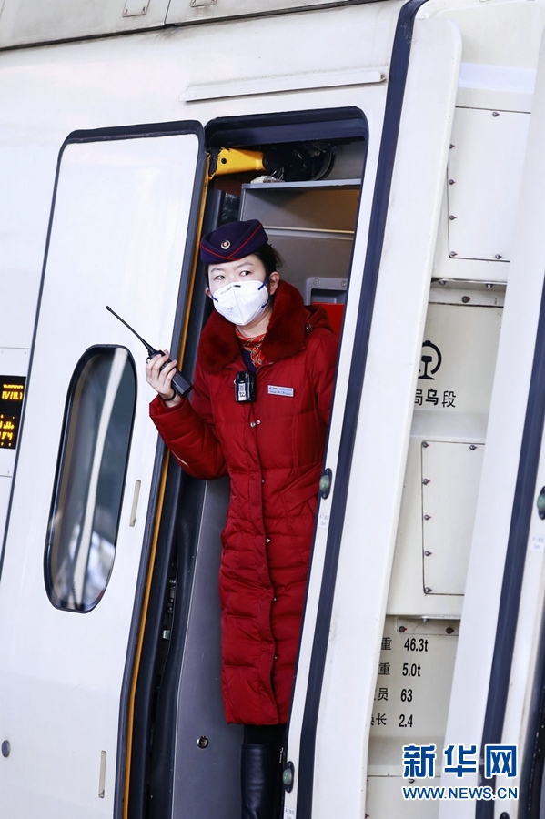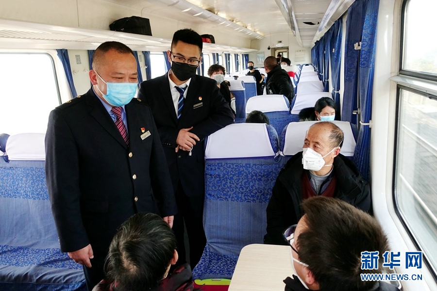 西寧客運(yùn)段職工問(wèn)詢旅客身體情況。新華網(wǎng) 郝寶君 攝