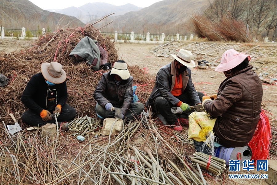 工作人員正在進行扦插育苗。新華網(wǎng) 卡婭梅朵 攝
