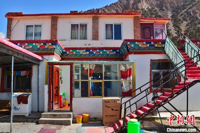 圖為拍攝于4月13日的牧民尕誦周拉的二層樓小院。中新社記者 魯?shù)り?攝