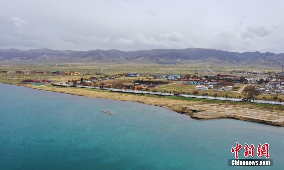 5月19日,航拍青海湖畔。初夏時節(jié),青海省海南藏族自治州青海湖畔萬物復(fù)蘇,碧水藍(lán)天,宛如油畫。中新社記者 馬銘言 攝