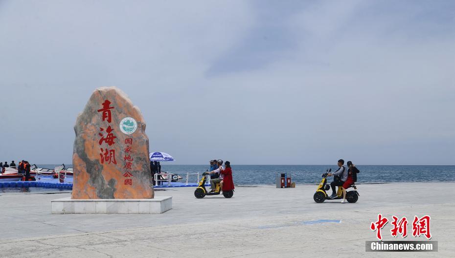 5月19日,游客騎著電動車在青海湖二郎劍景區(qū)內(nèi)游玩。當(dāng)日是中國旅游日,游客在青海省海南藏族自治州青海湖二郎劍景區(qū)內(nèi)觀湖、與水鳥互動、感受初夏青海湖的海天一色之美。中新社記者 馬銘言 攝
