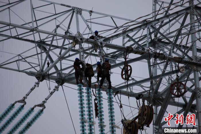 4月下旬,在海拔3100米的甘肅省甘南藏族自治州合作市根沙村,天空還時(shí)不時(shí)飄雪。在青豫工程甘肅段施工現(xiàn)場(chǎng),施工人員站在80米高的鐵塔上施工。(資料圖) 夏露 攝