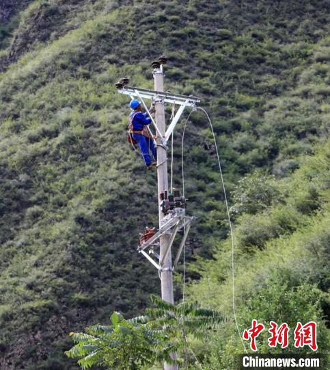 在丹巴與小金縣交界處的太平橋鄉(xiāng)黑風(fēng)頂村電力恢復(fù)施工現(xiàn)場,35名電力搶險人員正忙著架設(shè)輸電線路,該段新架設(shè)的10千伏輸電線路全長1.5公里,共7跨電桿,是此次電力恢復(fù)最關(guān)鍵的工程。山洪泥石流災(zāi)害造成丹巴縣城至半扇門輸電線路嚴重損毀,短時間內(nèi)難以恢復(fù),經(jīng)過協(xié)調(diào),指揮部決定從阿壩州小金縣取得電源,以便及時解決半扇門、太平橋兩個鄉(xiāng)鎮(zhèn)老百姓的用電問題?!坝型謴?fù)堰塞湖以上26個行政村,兩個鄉(xiāng)鎮(zhèn)和四所學(xué)校,兩個衛(wèi)生院2500多戶萬余人的生產(chǎn)生活用電?!眹W(wǎng)丹巴縣供電公司搶險人員韓聲壽表示。