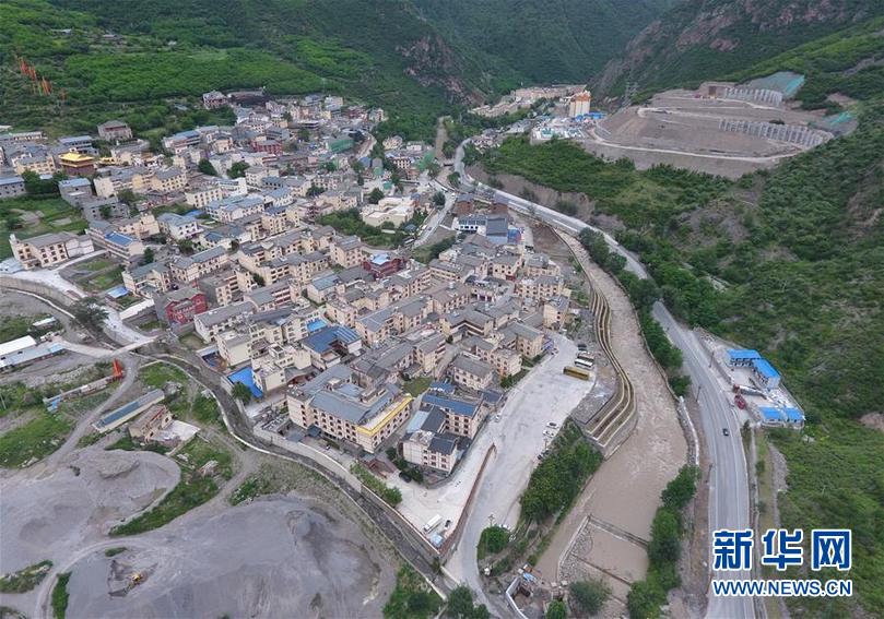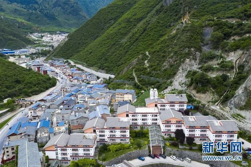 九寨溝地震震中九寨溝縣漳扎鎮(zhèn)新貌(無人機照片,6月18日攝)。新華社記者 劉坤 攝