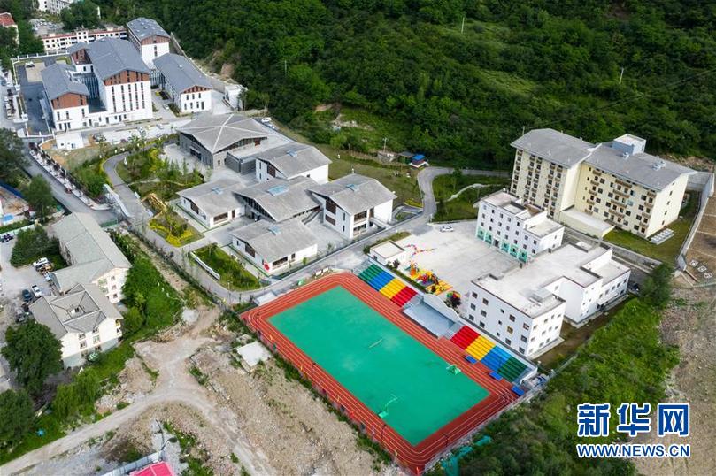 這是四川省阿壩藏族羌族自治州九寨溝縣九寨溝小學(原漳扎鎮(zhèn)小學)和九寨溝縣第二人民醫(yī)院(后)(無人機照片,6月18日攝)。 新華社記者 沈伯韓 攝
