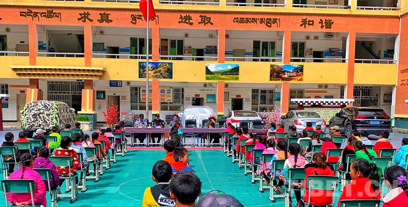中國(guó)西藏網(wǎng)訊 暑期將至,為進(jìn)一步增強(qiáng)少年兒童的法治意識(shí),營(yíng)造有利于少年兒童健康成長(zhǎng)的和諧氛圍。7月5日、6日四川省甘孜藏族自治州新龍縣公安局沙堆派出所及其所屬的銀多卡點(diǎn)民警先后走進(jìn)沙堆、銀多鄉(xiāng)小學(xué)校,開(kāi)展“法治進(jìn)校園,安全記心中”教育普法活動(dòng)。