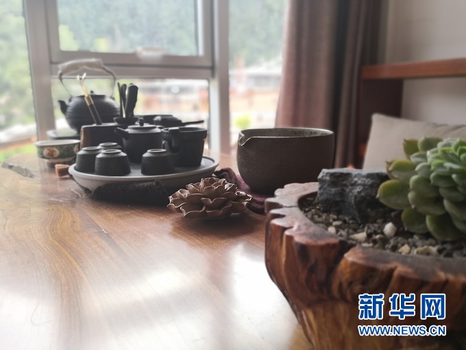 傍晚時分走進高吉村,錯落有致的民宿散落山間,落地窗透出暖黃色的燈光。房間里藏式床鋪與原生態(tài)家具相映成趣,靠窗的榻上擺放著茶幾、茶具、綠植,一覽無余的窗外夕陽半落、云飛鳥散。游客接待中心也一改傳統(tǒng)樣式,樓上是純木質(zhì)、開放式餐廳,樓下是小橋流水、曲徑通幽的水景,游客們?nèi)齼蓛傻暮戎Х?,享受著詩意的人生?/p>
