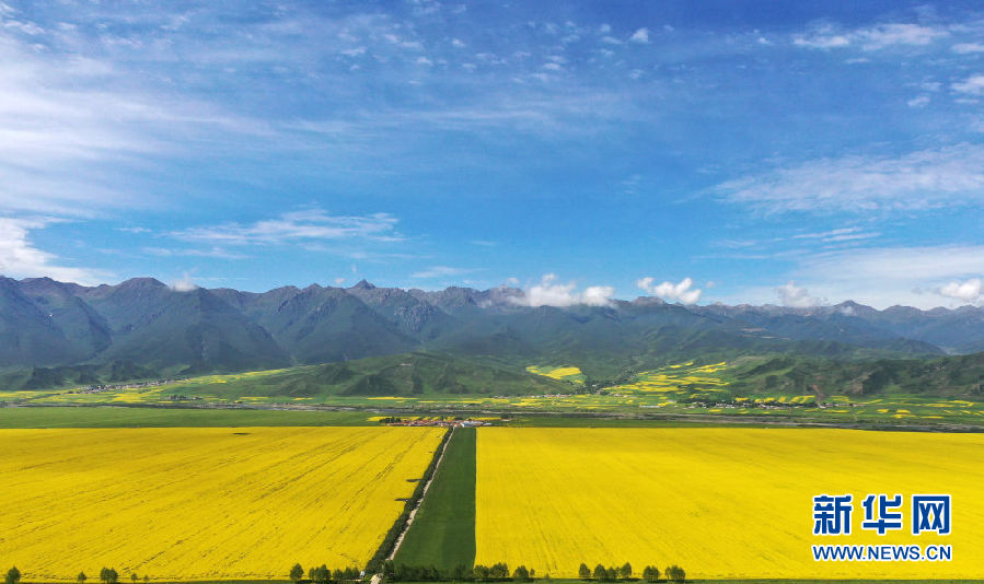 時下正值高原油菜花競相綻放的季節(jié),在青海省海北藏族自治州門源回族自治縣,金黃色的油菜花在高原藍天和云霧映襯下形成一幅壯麗畫卷,吸引游客前來觀賞。