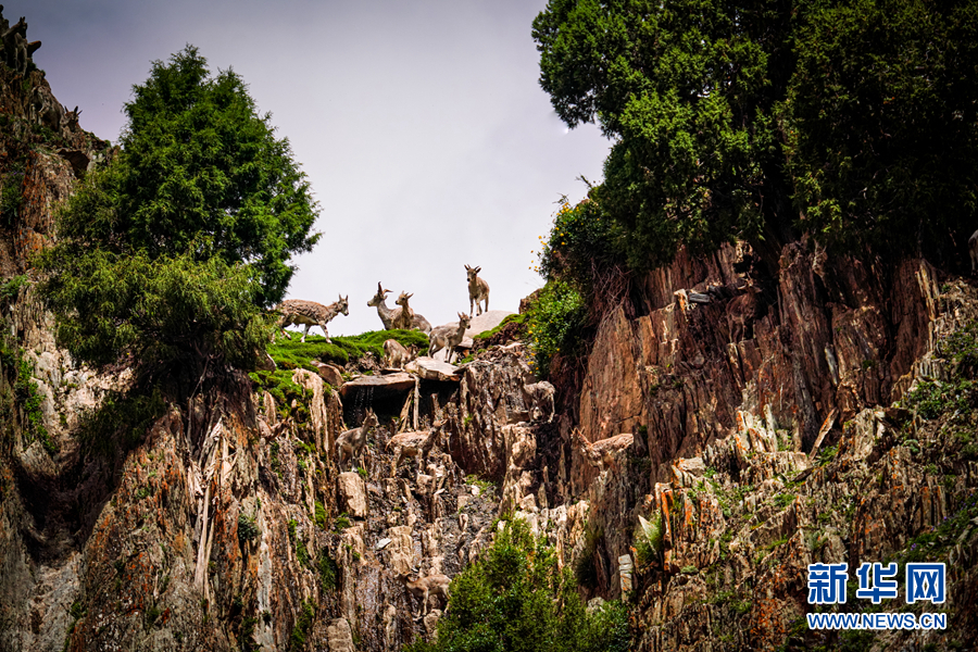 一群巖羊在巖壁上嬉戲。新華網(wǎng) 宋忠勇 攝