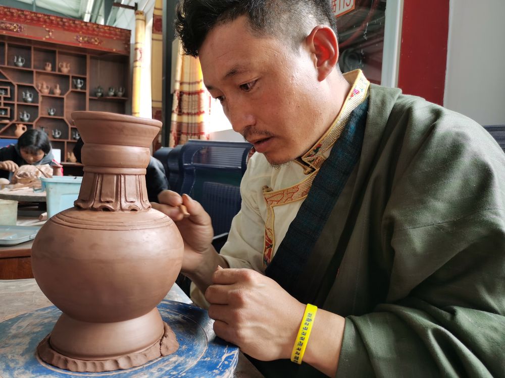 “我從小看著老藝人做黑陶,長(zhǎng)大也成了黑陶手藝人。如今,不少人靠黑陶過(guò)上了好日子。”青海玉樹(shù)藏族自治州囊謙縣吉曲鄉(xiāng)山榮村古陶器傳承工程中心負(fù)責(zé)人才角仁增說(shuō)。