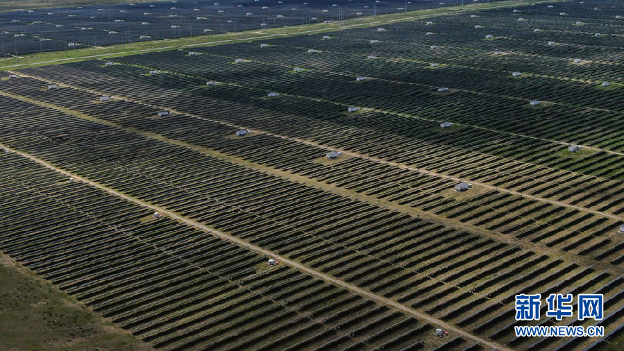 這是8月17日在青海省海南藏族自治州共和縣塔拉灘綠色產業(yè)發(fā)展園區(qū)拍攝的光伏電站(無人機照片)。新華社記者 張龍 攝