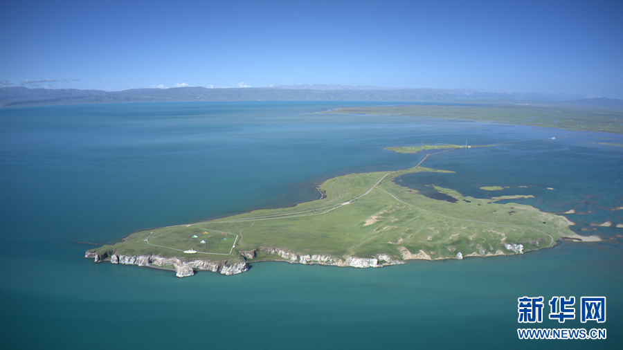 圖為青海湖鳥島(7月30日攝,無人機照片)。新華社 楊濤 攝