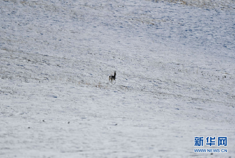 10月29日在青海省玉樹藏族自治州稱多縣嘉塘草原上拍攝的一只藏原羚。新華社記者 張龍 攝
