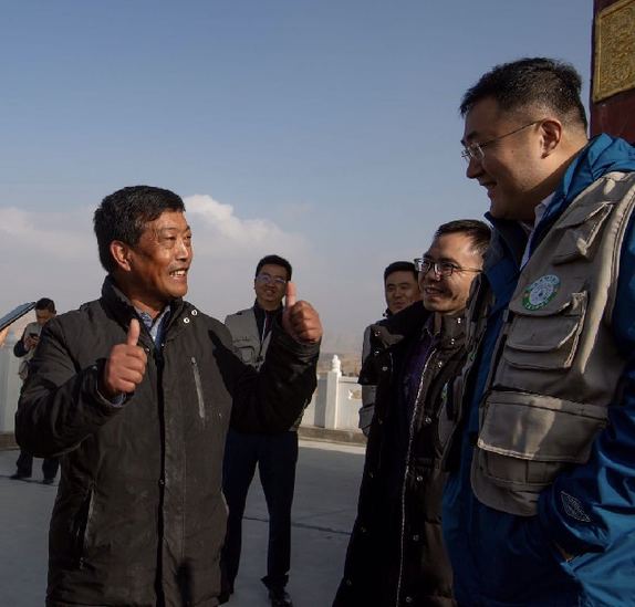 圖為青海省海南州共和縣恰卜恰鎮(zhèn)索爾加村的老支書扎西和中國太平洋產(chǎn)險(xiǎn)青海分公司總經(jīng)理李稚林等人愉快地交談。