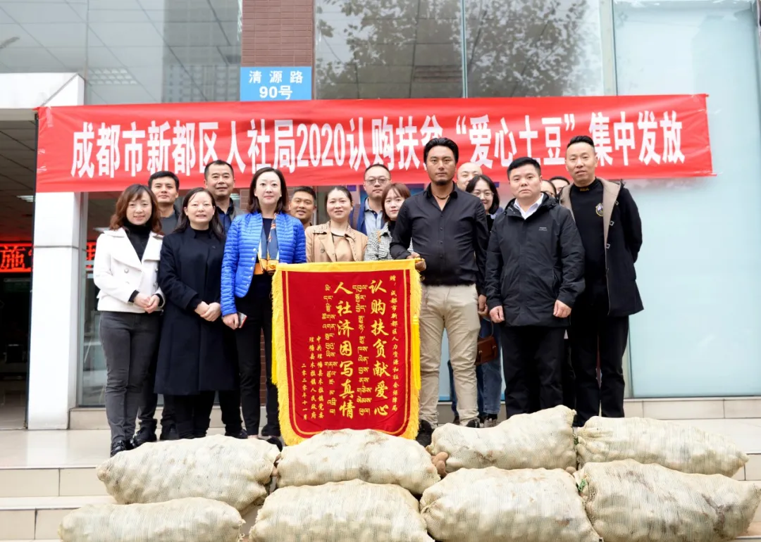 “感謝你們幫助認(rèn)購3萬余斤土豆……扎西德勒!”11月6日上午8點(diǎn)36分,來自理塘縣木拉鎮(zhèn)卡下村的“愛心土豆”車隊(duì)剛在新都區(qū)人社局停車場(chǎng)停穩(wěn),村長(zhǎng)降央吉村一個(gè)躍步下車,為等候多時(shí)的人社局同志送上“認(rèn)購扶貧獻(xiàn)愛心、人社濟(jì)困寫真情”的錦旗。