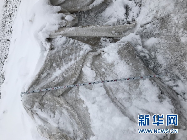 王飛騰團(tuán)隊發(fā)現(xiàn),“蓋被子”區(qū)域的冰體消融速度減緩?!啊w被子’的地方比不‘蓋被子’的地方冰的厚度高了一米,這高出來的一米就是‘蓋被子’的效果。”王飛騰介紹。