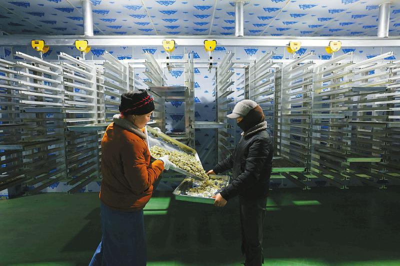 1月5日,松茸產(chǎn)業(yè)園的工人通過真空冷凍干燥設(shè)備加工凍干食用菌。尹鋼 攝