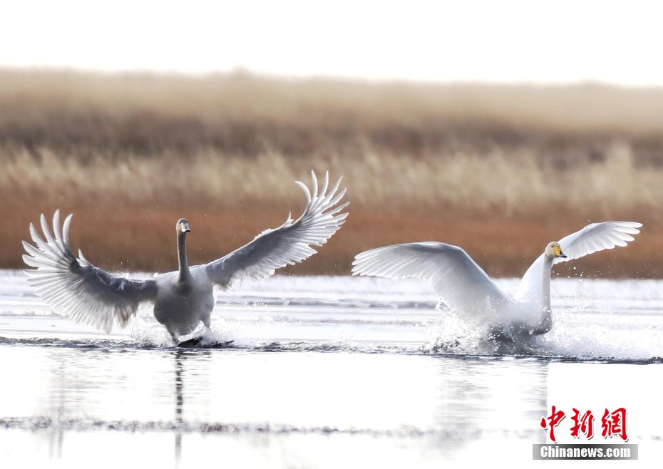 連日來,成群的野生大天鵝陸續(xù)飛臨四川省阿壩藏族羌族自治州若爾蓋縣高原小鎮(zhèn)麥溪鄉(xiāng)的洛賈瓊果河棲息越冬。這些跨越千里來此越冬的精靈讓洛賈瓊果河充滿了童話色彩,近百只天鵝在偌大的湖面上自由自在地覓食嬉戲,一會兒在天空翱翔,一會兒又成群結(jié)隊地在湖面上追逐,時而淺吟低唱,時而引吭高歌,時而振翅高飛,愜意十足,為冰封雪凍的高原濕地增添了些許靈動與生機,成為草原冰雪世界一道靚麗的風景。