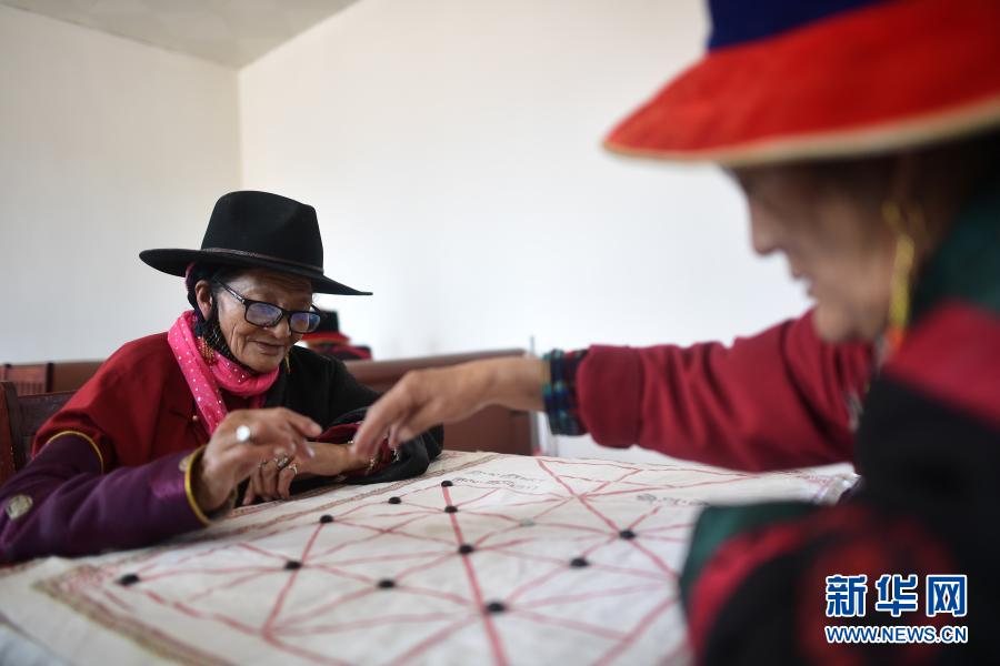 3月14日,在治多縣幸福敬老院棋牌室內(nèi),來(lái)自治多縣索加鄉(xiāng)的75歲老人青美(左)和同伴在下藏棋。新華社記者 張宏祥 攝