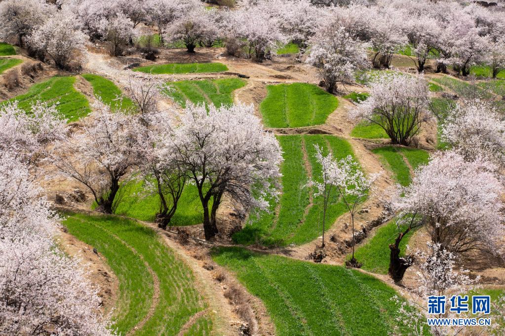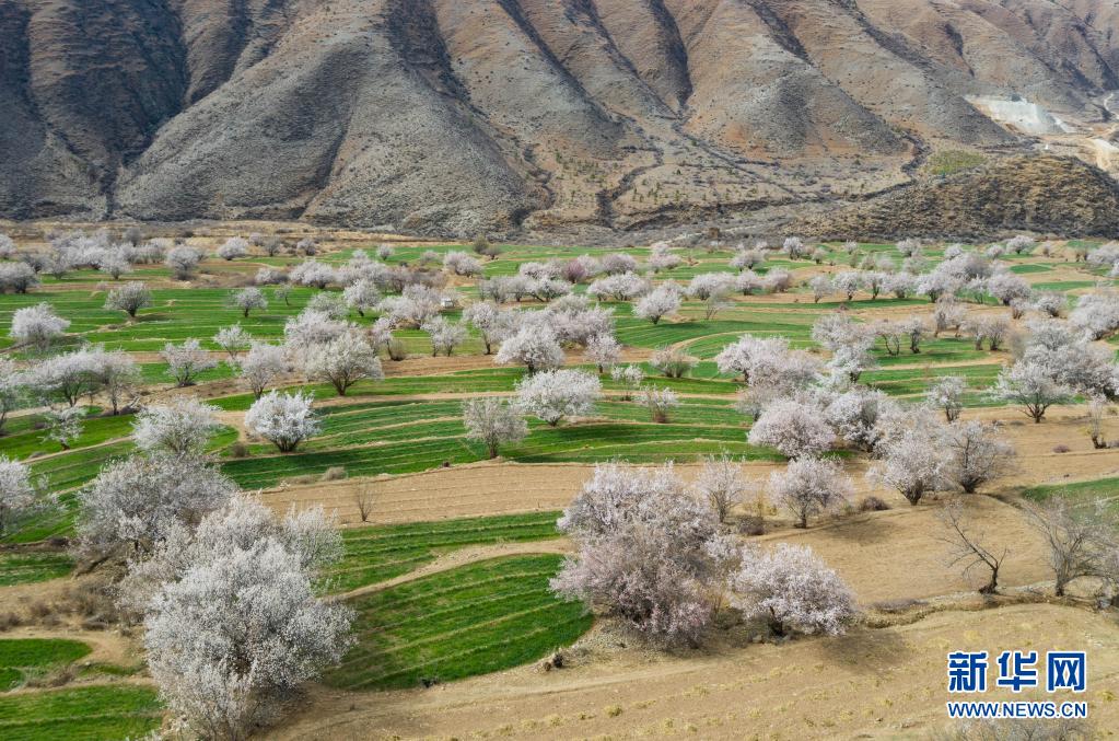 近日,四川省甘孜藏族自治州得榮縣境內(nèi)成片的野生桃花從河谷到山腰次第開(kāi)放,漫山遍野的桃花與雪山、麥地、白藏房等構(gòu)成高原上美麗的“世外桃園”畫卷。