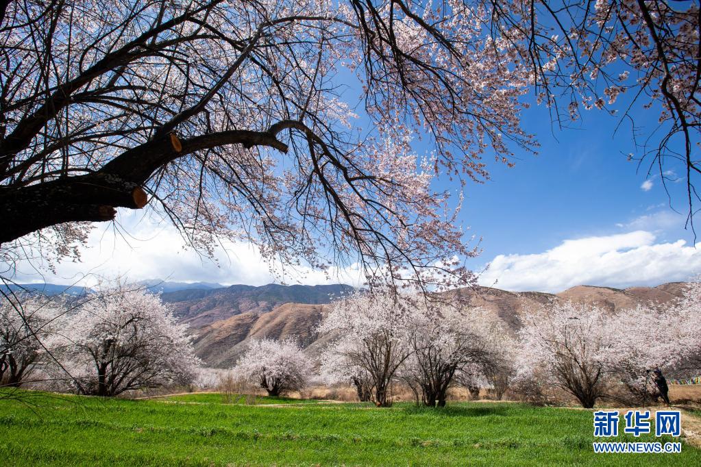 4月3日拍攝的得榮縣白松鎮(zhèn)日當(dāng)村桃花林一角。新華社記者 江宏景 攝