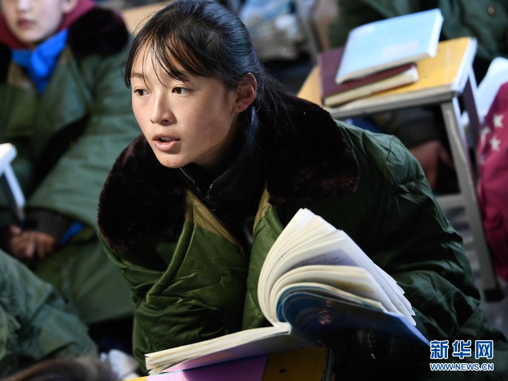 5月24日,曲邁卓瑪在瑪多縣民族寄宿制中學(xué)帳篷教室里讀書。新華社 張龍 攝
