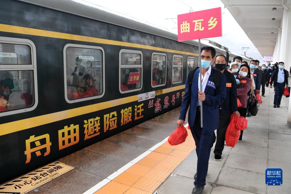 當日,甘肅省甘南藏族自治州舟曲縣9個鄉(xiāng)鎮(zhèn)的200戶500余名居民乘坐中國鐵路蘭州局集團有限公司開行的舟曲避險搬遷“感恩號”專列前往蘭州新區(qū)安家。據(jù)介紹,今年以來,甘肅省啟動舟曲縣地質(zhì)災(zāi)害避險搬遷工作,計劃年底前搬遷770戶2960人到蘭州新區(qū)安家,此次搬遷的200戶居民是首次借助鐵路專列運輸形式實施搬遷。