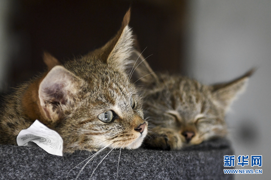 這是9月30日在西寧野生動物園拍攝的兩只人工救助的荒漠貓幼崽。新華社記者 張龍 攝