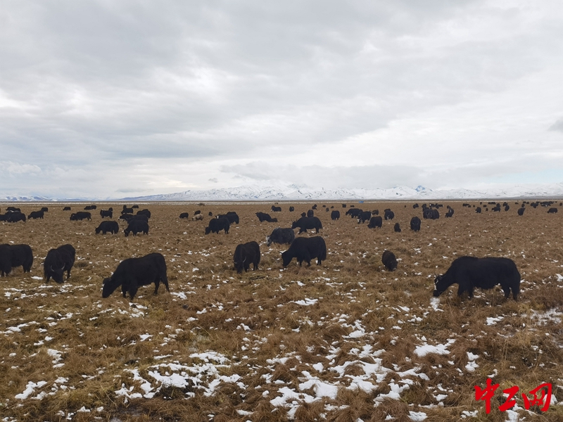 牧民放牧的牦牛