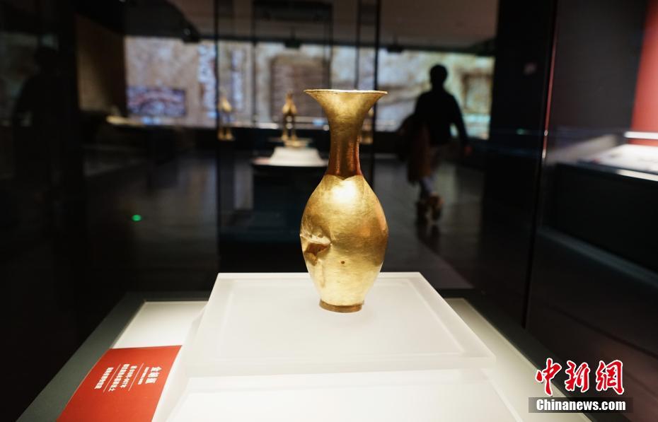 11月29日,位于青海省西寧市的青海省博物館展出從該省海西州都蘭縣熱水墓群出土的金胡瓶。當(dāng)日,青海省博物館經(jīng)一年半升級(jí)改造后開館并舉辦“1+3”主題展覽,160件藏品首次亮相。該展覽以青海歷史文物為主,青海非物質(zhì)文化遺產(chǎn)、考古成果、百年革命文物為輔,多角度展現(xiàn)地域歷史及民族文化。據(jù)了解,升級(jí)后的博物館上展文物1331件(套)/2405件,其中一級(jí)文物191件,珍貴文物248件(套),上展文物體量為青藏高原最大。 中新社記者 馬銘言 攝