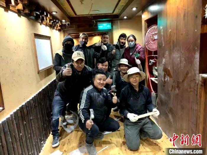 圖為索南仁青(前中)和員工一起干活。(資料圖) 受訪者供圖