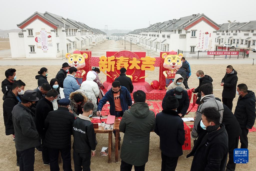1月25日,在蘭州新區(qū)舟曲避險搬遷安置點,舟曲地質災害避險搬遷第一臨時黨支部組織書法家給搬遷群眾送春聯(lián)。新華社記者 范培珅 攝