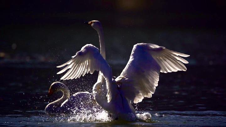 “你看,那邊是一家五口,正在玩鬧嬉戲,特別和諧。”楊春林一邊說著,一邊迅速將手中的鏡頭轉向大天鵝。