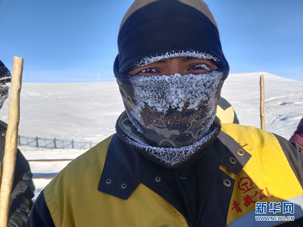 一天的工作結(jié)束后,她們的帽子、脖套上已布滿厚厚的冰霜。圖為中國(guó)鐵路青藏集團(tuán)公司格爾木工務(wù)段職工才仁文毛。