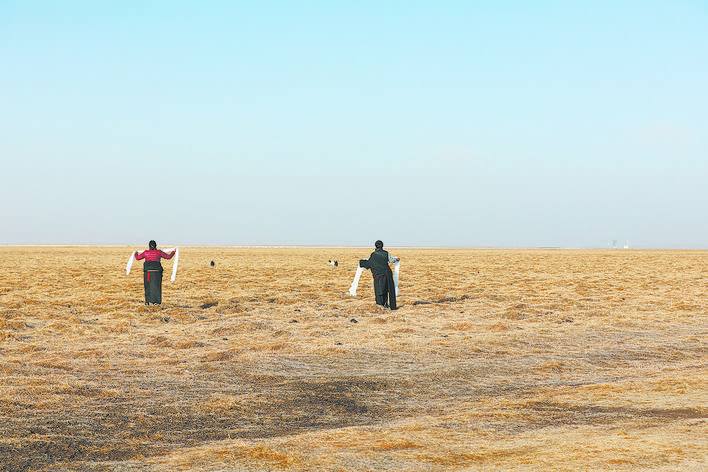 年復(fù)一年,如科每天帶上工作證、望遠(yuǎn)鏡、茶水和干饃饃,從他居住的觀測站出發(fā),騎著摩托車巡護濕地;他的妻子沿著湖泊撿拾垃圾,守護著黑頸鶴的棲居環(huán)境,守護著野生動物的美好家園。