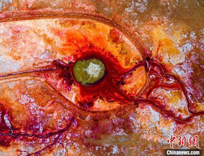 圖為無人機航拍“惡魔之眼”艾肯泉。莫啟明 攝