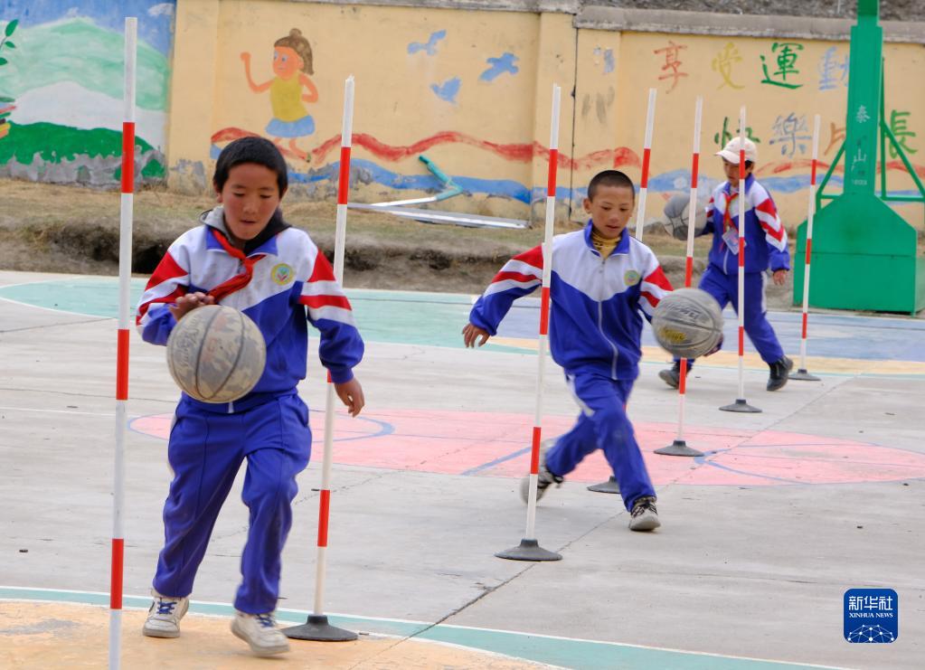 4月18日,稱多縣文樂中心寄校籃球社團的學生在活動。新華社記者 央秀達珍 攝