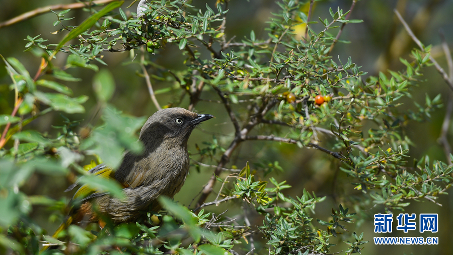 在青海省玉樹(shù)藏族自治州通天河畔勒巴溝拍攝到的橙翅噪鹛。