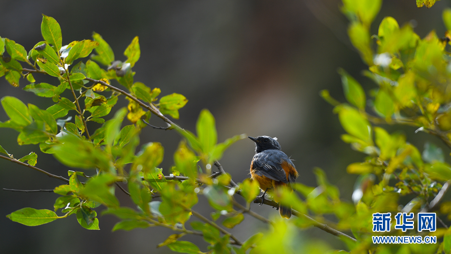 在青海省西寧市湟中區(qū)群加國(guó)家森林公園拍攝到的藍(lán)額紅尾鴝。