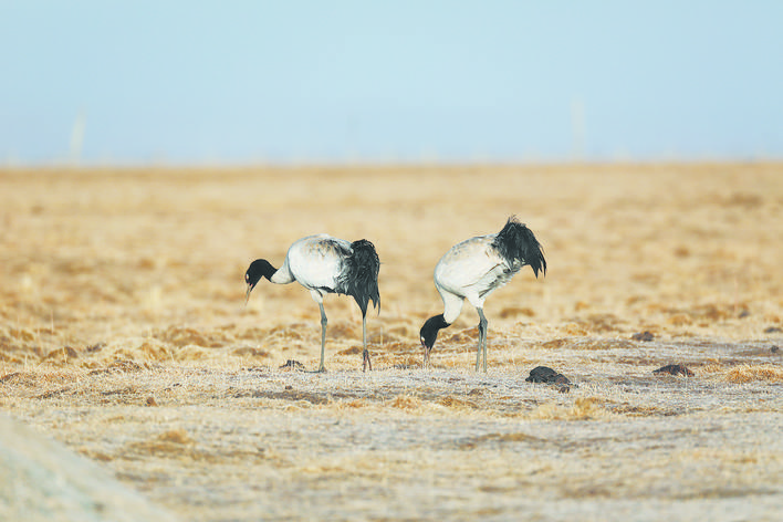 圖為黑頸鶴夫婦以高聲合鳴的方式宣誓領(lǐng)地,威懾入侵者。張景元 攝