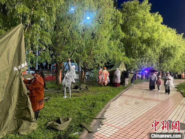 與此同時(shí),阿壩森林消防支隊(duì)留守人員連夜冒雨幫助搭建帳篷30余頂。