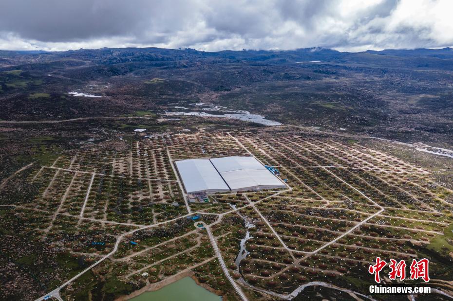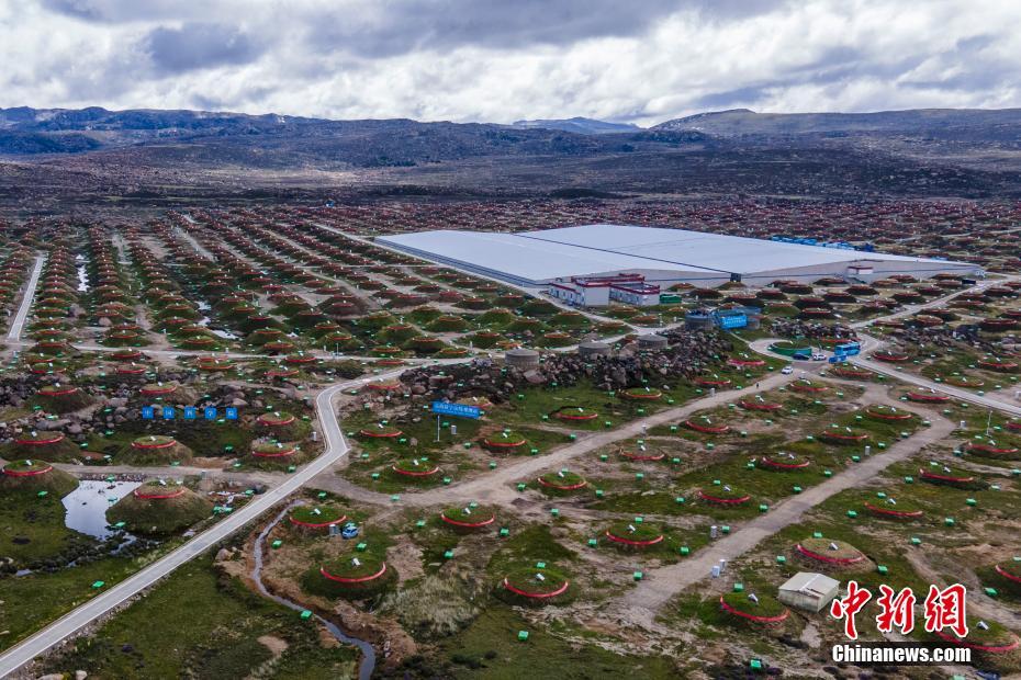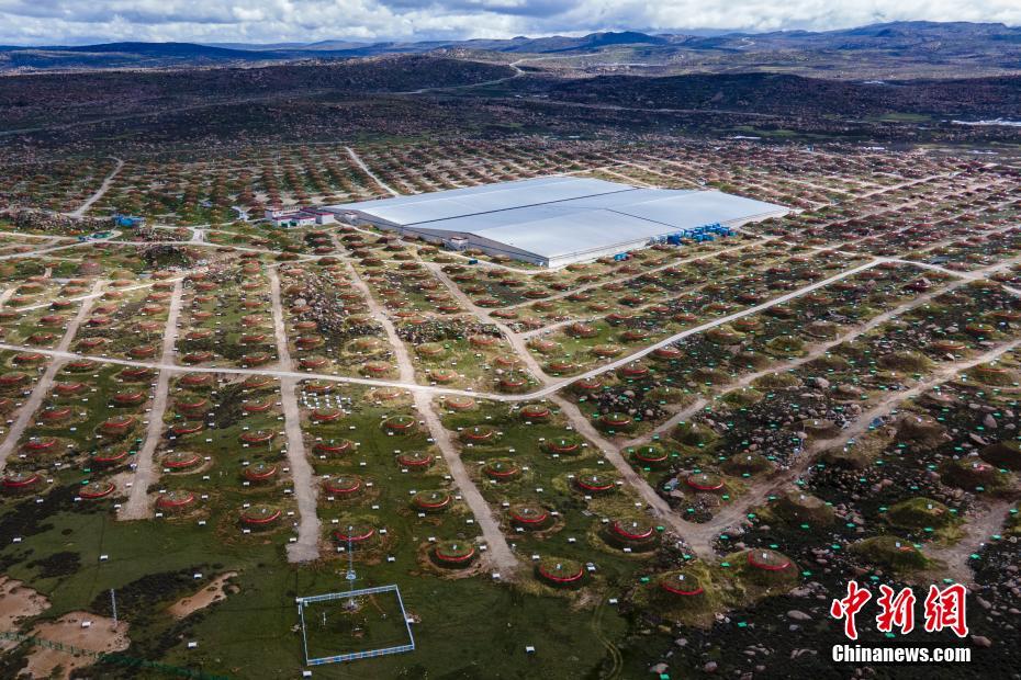 6月28日,四川稻城,稻城高海拔宇宙線觀測站均勻分布的探測器。海拔4410米的四川省甘孜州稻城縣海子山,5216個電磁粒子探測器和1188個繆子探測器,以及占地78000平方米的水切倫科夫探測器有序分布在1.36平方公里范圍,十分壯觀,這是中國建設(shè)的第三代高山宇宙線實驗站。 中新社記者 劉忠俊 攝
