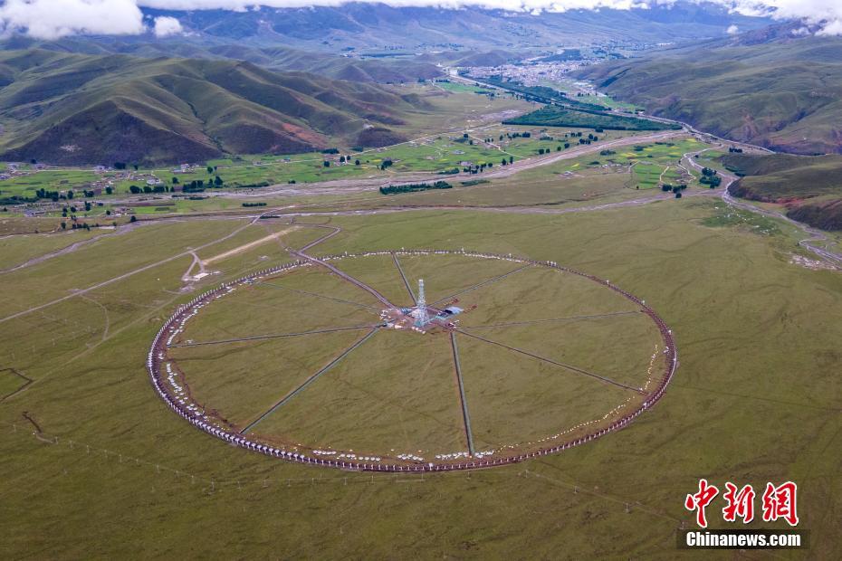 6月29日,四川稻城,航拍空間環(huán)境地基綜合監(jiān)測(cè)網(wǎng)(子午工程二期)全景,中間為定標(biāo)塔。四川省甘孜州稻城縣境內(nèi),國(guó)家重大科技基礎(chǔ)設(shè)施空間環(huán)境地基綜合監(jiān)測(cè)網(wǎng)(子午工程二期),正在進(jìn)行緊張的設(shè)備安裝,預(yù)計(jì)2022年底完成天線安裝調(diào)試工作。 中新社記者 劉忠俊 攝