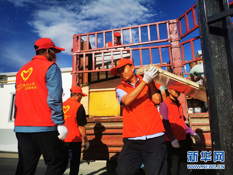 志愿服務(wù)隊(duì)為搬遷群眾搬送物資。(圖片來(lái)源:中建三局西北公司)