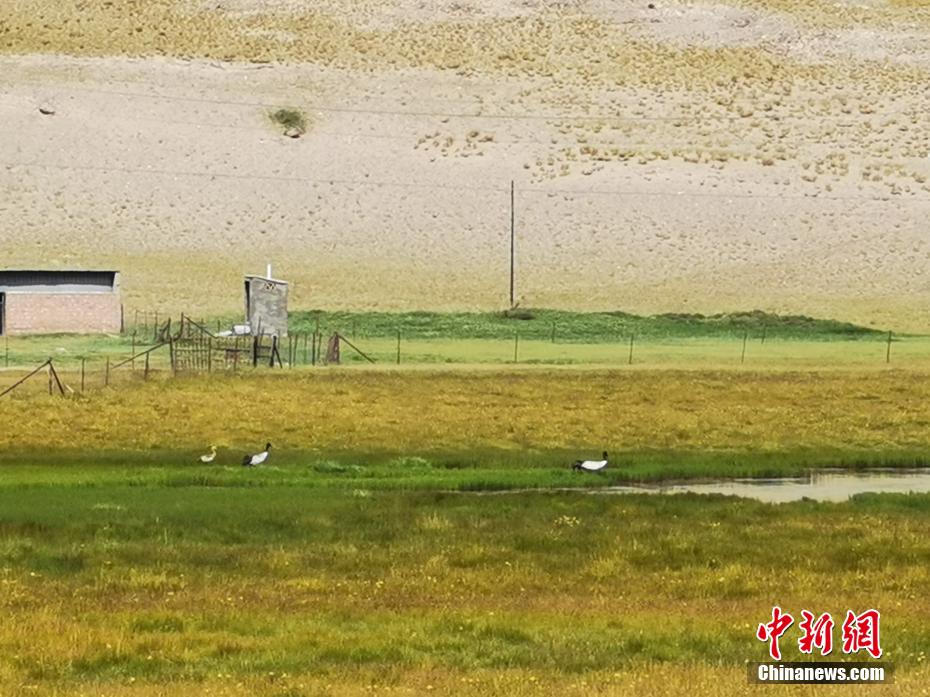 8月9日,祁連山南麓的青海省海北藏族自治州祁連縣央隆鄉(xiāng),三只黑頸鶴正在央隆濕地悠閑踱步,不時發(fā)出鳴叫聲。黑頸鶴是大型飛行涉禽,頸的上部為黑色,故稱黑頸鶴。每年,黑頸鶴在春季遷徙到繁殖地,秋季到達(dá)越冬地,是世界上唯一生長、繁殖在高原的鶴。